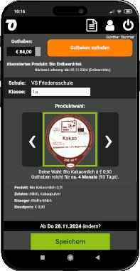 Wie wäre es, wenn Schüler ihr Lieblingsprodukt per Handy wählen könnten? So leicht, dass es richtig Spaß macht: Einfach Produkt auswählen und demnächst zugestellt bekommen. Mit Online-Abo muss niemand mehr Geld einsammeln oder offene Beträge einmahnen. Warum nicht? Weil alles im Vorfeld bereits bezahlt ist!